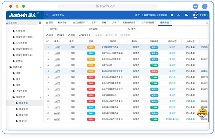审批机制: 申请人需填写借阅目的、期限等信息,提交给档案管理员或相关领导审批。审批通过后,系统自动授予其临时(或长期)的查阅、下载或编辑权限。
