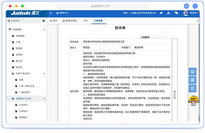 具备强大的二维码工单生成功能,能根据工单具体信息自动生成专属二维码,操作简便快捷,为工单流转提供高效数字化载体。